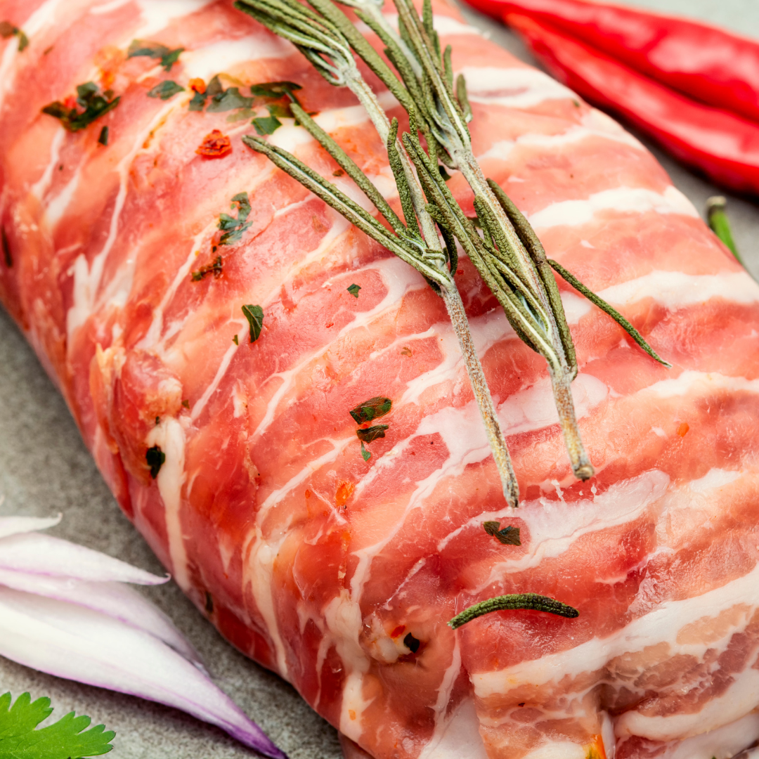 Crafted from Premium A-Grade South African Beef Fillet, our Festive Bacon-Wrapped Fillet Tournedos are the ultimate celebration cut. The whole fillet is cleaned and pepper-seasoned to perfection, then wrapped in a veil of crispy, smoky bacon, creating the ideal balance of tenderness, richness and festive flavor.